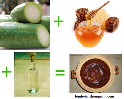 Bí đao cắt miếng cho vào hỗn hợp rượu + nước. Đun vừa lửa chừng 6h cho đến khi còn khoảng 1 bát nước thì cho ra nghiền bằng muôi gỗ. Nghiền kỹ rồi lọc qua vải màn cho mịn. Đổ lại nồi và cho thêm mật ong vào đun chừng 2h , quấy đều tay.