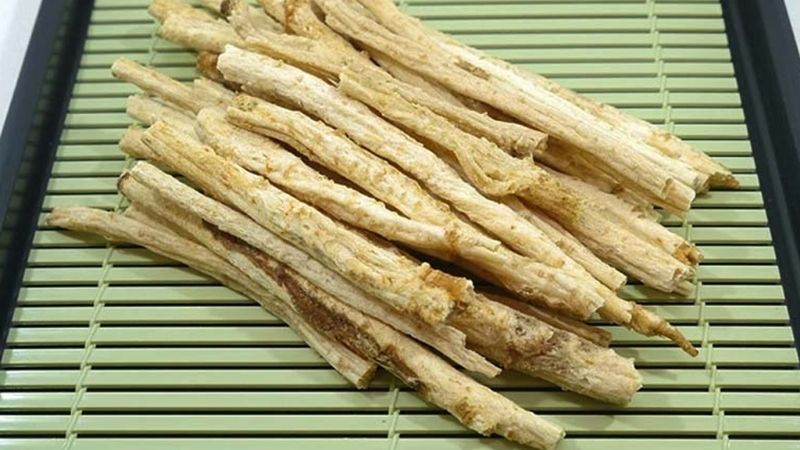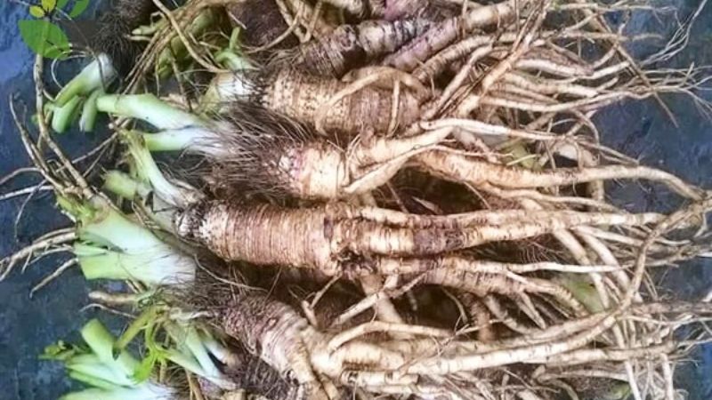 Chế biến: Đem rửa sạch rễ củ, ngâm với nước gạo một đêm. Sau đó đồ chín và phơi khô.