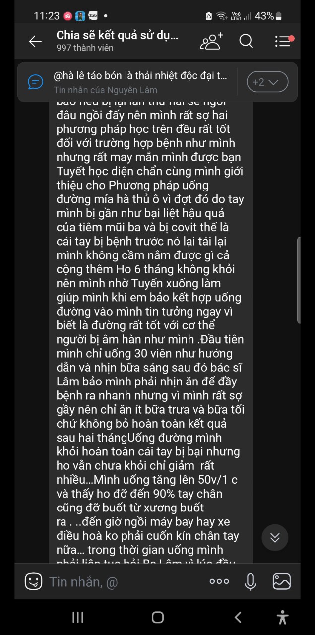 Đây là kết quả mới nhất , còn nhiều kết quả khác nếu bạn cần chúng tôi chia sẽ thêm. Đây là phương pháp chữa bệnh thuận tự nhiên, không tốn kém và bảo đảm khỏi bệnh. Giúp cơ thể thải hết độc tố và trẻ khỏe như lúc chưa bệnh. zalo tư vấn: 0774733514