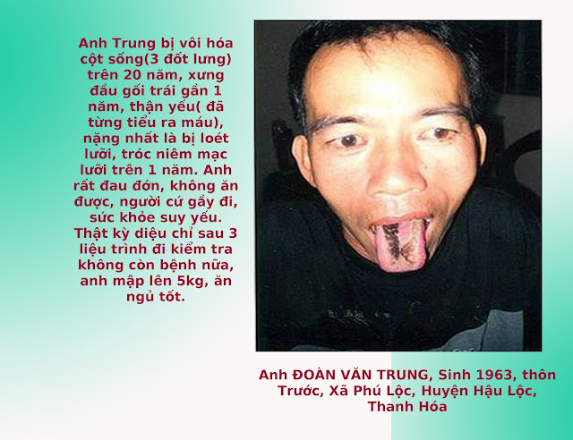 Lưu ý: bệnh viện thông minh.com áp dụng phương pháp trị bệnh tại nhà, do đó không xây dựng các tòa nhà lớn để thu hút bệnh nhân và tính tiền viện phí cao. Chúng tôi vì mục đích giúp bệnh nhân khỏi bệnh và có sức khỏe thật sự là chính, do đó chỉ chú trọng đầu tư đến phương pháp trị và loại thuốc thật tốt để hoàn thiện sức khỏe bệnh nhân. Đây là phương pháp mới nhằm tiết kiệm tối đa chi phí cho bệnh nhân, vì vậy chúng tôi khác với các bệnh viện khác là dám cam kết hoàn tiền nếu không giúp bệnh nhân khỏi bệnh. Y học tái sinh, con đường mới cho bệnh nhân.