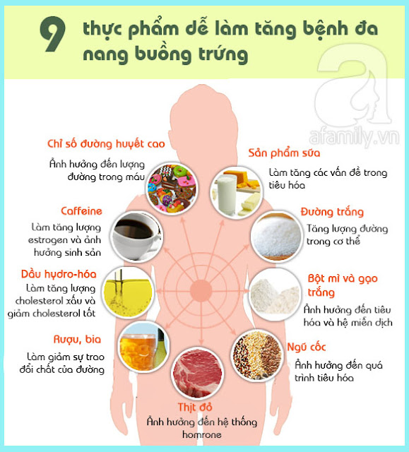 Một điều quan trọng ở phụ nữ buồng trứng đa nang có sự gia tăng hormon nam adrogen, giảm nội tiết tố nữ gây nên do đó việc tăng cường các nhóm thực phẩm giàu nội tiết tố nữ góp phần đáng kể trong việc cải thiện tình trạng đa nang, giúp kinh nguyệt trở nên đều hơn, chu kỳ kinh nguyệt được rút ngắn, làm dày hơn lớp nội mạc lòng tử cung thuận lợi hơn cho việc thụ thai.