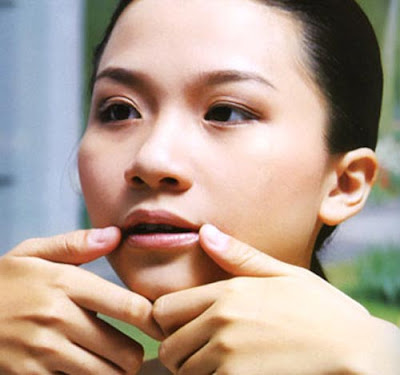 25. Huyết trắng: Dùng hai đầu ngón tay, ngón trỏ và ngón giữa, để nằm ngang chà xát hai bờ môi một lúc.