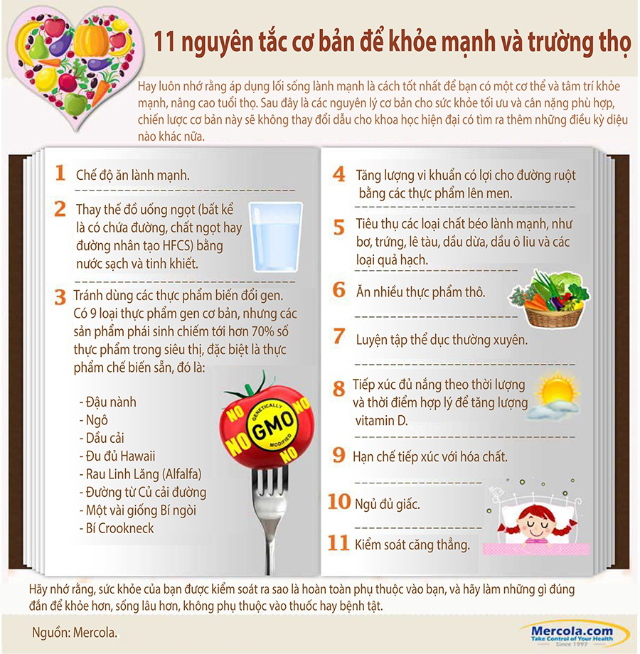 11 nguyên tắc nền tảng để khỏe mạnh và trường thọ (infographic)