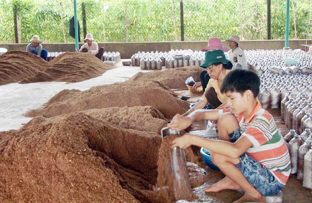 Nguyên liệu trồng nấm mèo là mùn cưa hoặc rơm rạ