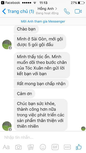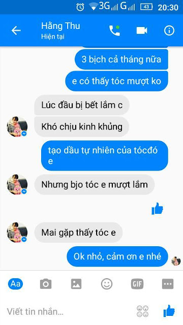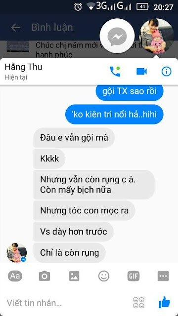 Khi nhận đc tin nhắn "Tóc em yếu rụng xơ xác lắm" thì mình luôn trả lời "Em yên tâm, chắc chắn tóc dày khoẻ".