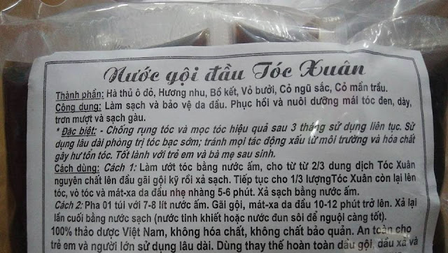 SỬ DỤNG NƯỚC GỘI ĐẦU TÓC XUÂN: TP: HÀ THỦ Ô ĐỎ, HƯƠNG NHU, BỒ KẾT, VỎ BƯỞI, CỎ NGỦ SẮC, CỎ MẦN TRẦU (Thay cho dầu gội, dầu xả và cả kem dưỡng tóc...)