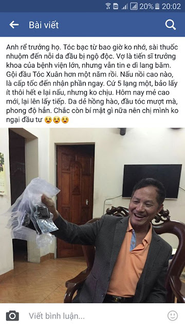 Nhưng ôi thôi, tóc càng mọc dày lên, thì tóc bạc lại càng nhiều. Hoang mang quá. Giữ bình tĩnh quan sát, thu thập thông tin từ khách hàng. Xưa vội vàng rồi, nay phải thật kỹ. Hoá ra cùng là các nang mất tóc, nang nào còn khoẻ trc đây nuôi sợi tóc đen thì tóc mọc lại nhanh hơn và vẫn ra sợi đen. Các nang tóc già nua, trc đây nuôi tóc bạc, cũng đã bị rụng, ì ạch mọc sau cũng lại ra sợi bạc. Có sợi nào trc bạc nay đen thì chưa thể kiểm chứng.