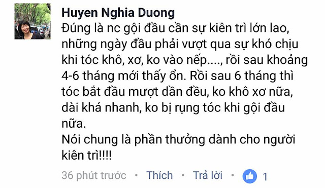 Như đứa e thân thiết này của mình. Nịnh nó dùng từ ngày thử nghiệm đầu tiên. Ngày ấy tóc nó xơ xác và mỏng yếu lắm nên vui vẻ sử dụng ngay. Rồi đều đều gần 2 năm nay, cứ có ai chạy qua cổng cơ quan nó là gửi cho chai nước chắt đáy nồi. Chủ nhật vừa rồi nó lên chơi, tóc buộc vổng một nắm to, dày khoẻ óng ả, đến mình cũng ngạc nhiên. Chị em cứ trầm trồ với nhau Nước gội đầu tốt thật.