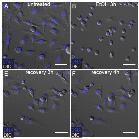 Cậu Tang đã tạo ra quá trình chết rụng tế bào bằng cách thêm ethanol 4,3% vào trong cụm tế bào và cẩn thận loại bỏ độc tính cảu ethanol một cách từ từ. Theo dõi cho thấy một phần tế bào đã thực sự phục hồi sau khi độc tính được dỡ bỏ.
