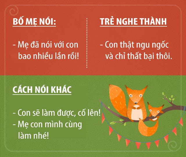 Những câu nói mà bố mẹ vẫn hay nói với trẻ hàng ngày. Thế nhưng ít bố mẹ biết rằng nó lại có ảnh hưởng rất lớn đến cách suy nghĩ và hành vi của trẻ. Ví dụ như: Khi bạn nói “Mẹ đã bảo con bao nhiêu lần rồi”, trẻ có thể hiểu rằng mình thật ngu ngốc và chỉ luôn thất bại.