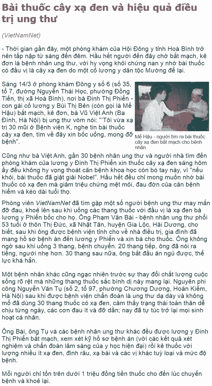Tâm sự của một số bệnh nhân Ung thư đã điều trị hiệu quả bằng cây xạ đen (Lưu ý: Kết quả còn phải phụ thuộc vào cơ địa của mỗi người)