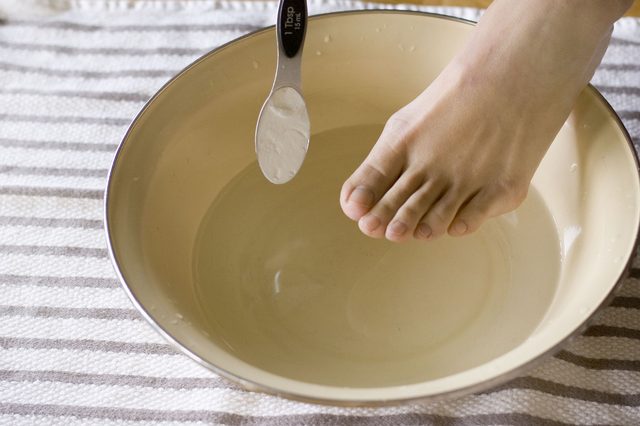 Nếu bạn sử dụng baking soda, pha vào một chậu nước ấm và ngâm chân 15 phút trước khi đi ngủ, bạn sẽ ngăn cản hoàn toàn mùi hôi chân do đi giày tất đồng thời làm mềm mịn da chân ngay cả với những người bị nứt gót chân lâu ngày.